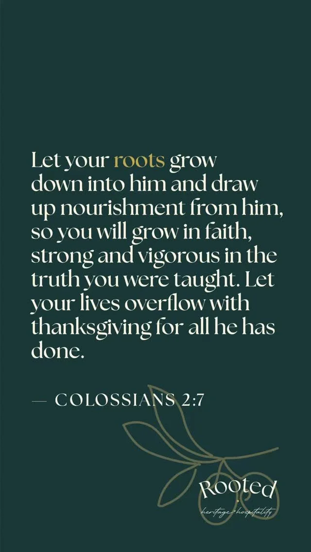 “Let your roots grow down into him and draw up nourishment from him, so you will grow in faith, strong and vigorous in the truth you were taught. Let your lives overflow with thanksgiving for all he has done.”
